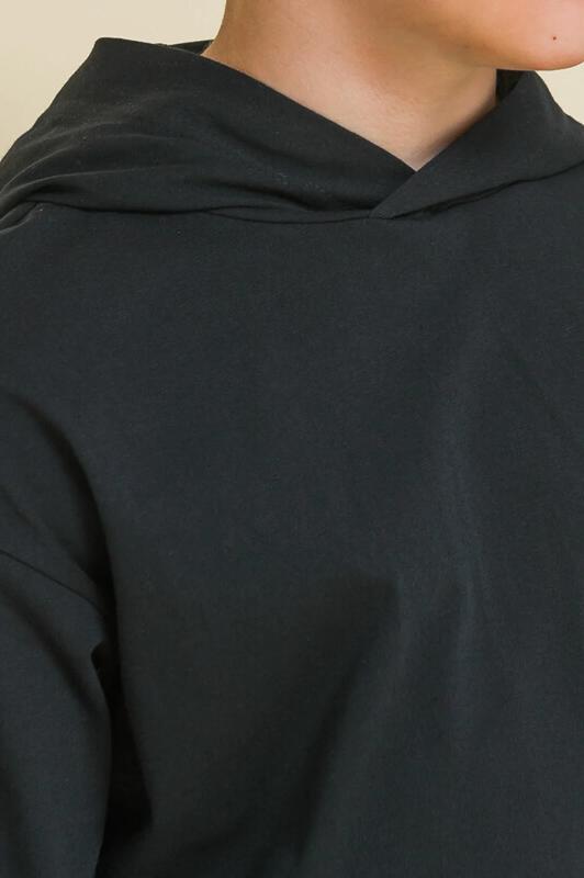 Детское худи с капюшоном для мальчика выполнено из мягкого бербер-флиса (фактура «барашка»). Куртка актуального оверсайз-силуэта с рукавами кроя реглан подарит ребёнку комфорт и не будет сковывать его движений. По бокам оригинальные вставки из плотной эластичной рибаны. Сочетание материалов с разной фактурой — один из трендов сезона. Капюшон защищает ребёнка от холода и ветра. Худи оверсайз для мальчиков удобно застёгивается на молнию по переду, вверху молнии ограничитель для безопаного застёгивания. В швах по переду расположены боковые карманы. Окантовка капюшона, манжеты рукавов и частично манжета по низу изделия выполнены из эластичной рибаны — она на 95% состоит из качественного хлопка. Эластан помогает рибане не растягиваться, сохранять отличную форму долго. Худи однотонное, без принта. Модель неприхотлива в уходе. Одежда из флиса тёплая, лёгкая, мягкая, просто стирается и быстро сохнет, не выгорает и не скатывается, сохраняет прекрасную форму надолго. Худи детское выполнено в универсальном чёрном цвете