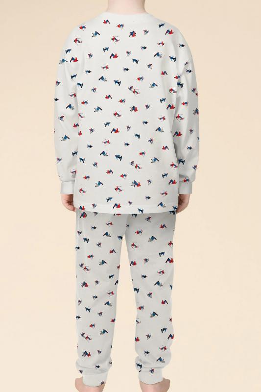 Детская пижама– уютный комплект бренда Pelican, состоящий из лонгслива и брюк. Комфортный сон очень важен для роста и восстановления организма ребенка, поэтому пижама малышу должна обеспечивать максимальный комфорт и защиту. Пижама для мальчика бренда Pelican создана из натурального хлопка, сохраняет тепло, гигроскопична, впитывает влагу. Материал позволяет коже ребенка дышать, мягкая резинка брюк не стягивает, не натирает, по низу брюк манжеты. Изделие после стирки не садится, не растягивается, не линяет. Джемпер с круглым вырезом горловины, спущенным рукавом. Брюки прямые, оптимальной ширины. Ровные мягкие швы, отделка по горловине и манжеты на рукавах и низу брюк придают этой пижаме для детей лаконичный образ и модное исполнение. Широкая размерная сетка позволяет подобрать оптимальный размер как для малыша, так и подростка. Пижама для мальчика очень удобна, она обязательно понравится ребенку и подарит хорошее настроение. Модель из зимней коллекции сочетается с носками с рисунком темно-синего цвета. Цвет к