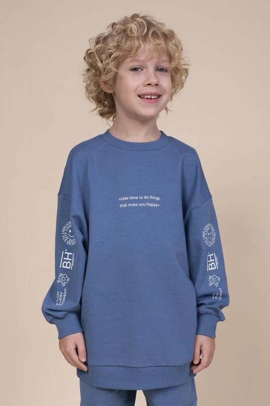 Свитшот оверсайз из футера для мальчика. 100% хлопок в составе – ткань мягкая, дышащая, приятная на ощупь. Спущенное плечо, широкий рукав и свободный крой – настоящий трендовый оверсайз. Горловина, рукав и низ изделия на манжете из рибаны - плотно прилегает и не давит, отлично тянется. Принты на рукавах и надпись спереди – добавляет образу элегантность и настраивает на позитив. Подходит для создания стильного образа в паре с джоггерами и футболкой. Идеален на каждый день, для прогулок и активного отдыха. Размерная линейка: 1 (86): 2 (92): 3 (98): 4 (104): 5 (110): 6 (116): 7 (122): 8 (128): 9 (134): 10 (140): 11 (146). Модель представлена в универсальных цветах – черный, джинс и песочный. Выбирайте нужный размер по таблице размеров на фото. Цвет товара на экране вашего устройства может отличаться от цвета изделия вживую.
