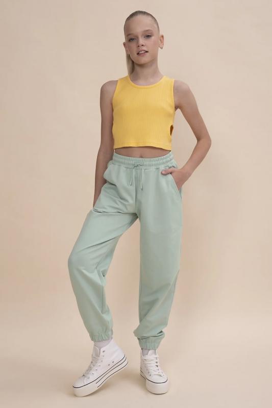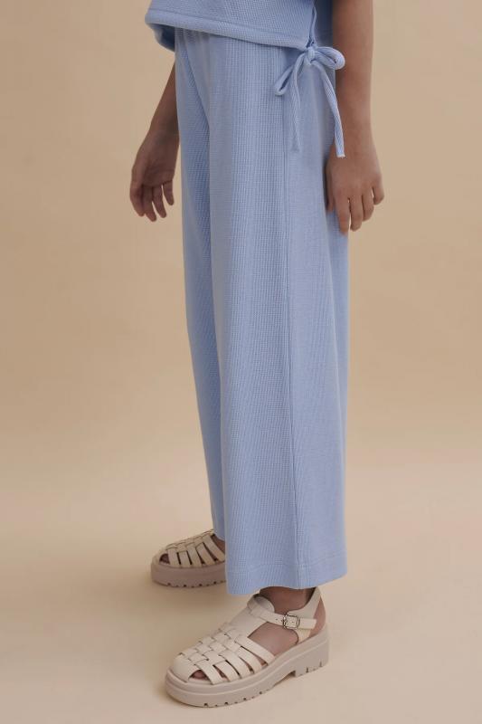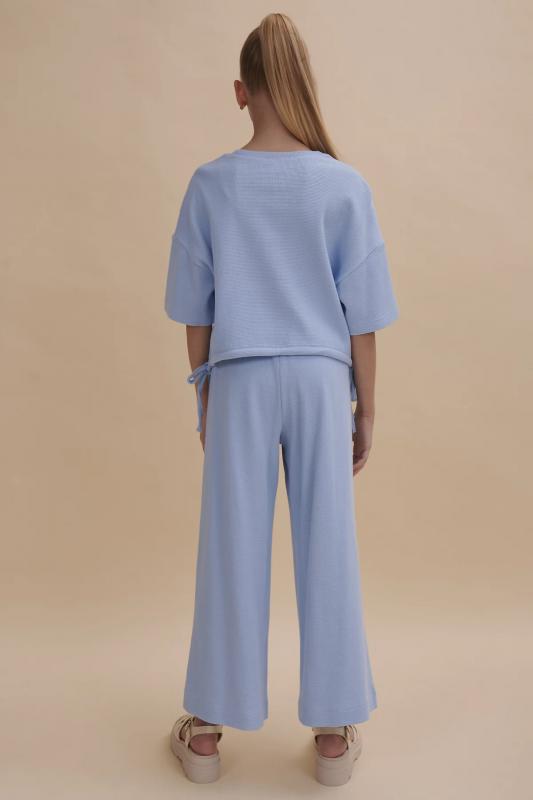 Выбирайте нужный размер по таблице размеров на фото. Цвет товара на экране вашего устройства может отличаться от цвета изделия вживую. Комплект для девочки (кроп-топ и кюлоты), в котором собраны все самые актуальные тренды. Кроп-топ оверсайз-силуэта с сильно спущенным плечом дополнен утяжками по низу, с помощью которых можно регулировать объём и менять силуэт изделия. Брюки на широкой резинке с внутренней регулировкой объема шнуром. Благодаря особенностям кроя костюм долго будет "