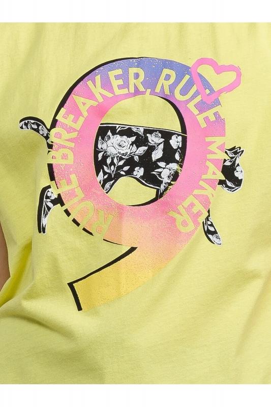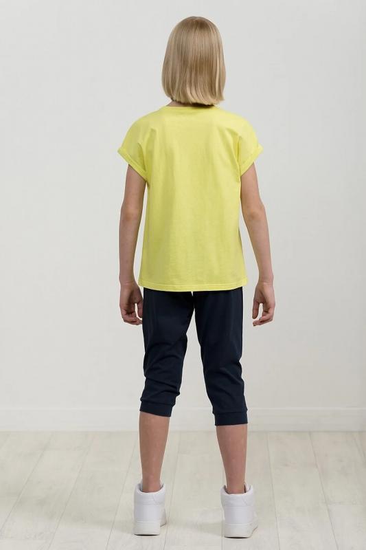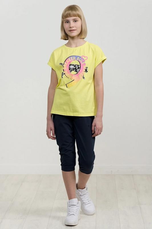 Комплект для девочек футболка и бриджи. Футболка актуального оверсайз силуэта. Спущенная линия плеча, отворот манжета из основной ткани. Стойкий эластичный принт в стиле граффити. Перевод Тот, кто создает правила. Тот, кто нарушает правила. Бриджи расслабленной формы с дополнительной регулировкой объема шнуром и манжетами из основной ткани.