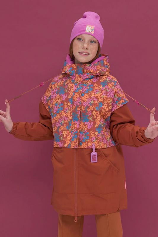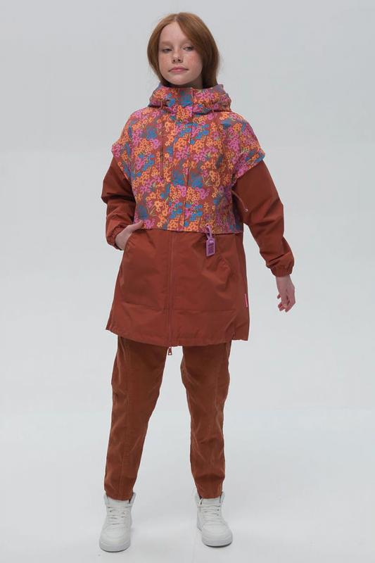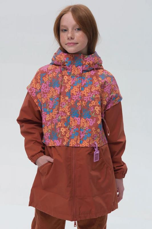 Современная и стильная ветровка для девочек. Ветрозащитная непромокаемая детская ветровка для малыша ультрамодного дизайна и вкусных природных расцветок с ароматом отдыха и пикника, подарит моднице солнечное настроение. Имитация жилетки в цветочек надетой поверх ветровки. Приятная матовая зернистая ткань - тренд сезона 2023 - привлекает внимание своей фактурностью. Пройма декорирована крылышками, создающие дополнительную воздушность модели. Манжет рукава из основной ткани с резинкой внутри и регулируемый шнурок в нижней части изделия защищают тело от продувания. По переду накладные карманы кенгуру. Двухсторонняя разъемная молния по центру. Молодежная ветровка с капюшоном для подростка удивит своей функциональностью. Продуманный крой делает каждое движение свободным и комфортным. Легкая куртка весна лето ветровка подростковая, прямой свободный силуэт, оверсайз фасон и спущенное плечо делают линии верхней одежды мягкими и плавными. Весенняя курточка ветровка с мембраной водонепроницаемая, защитит от ветра и до