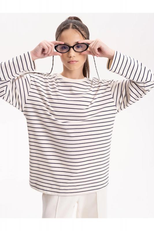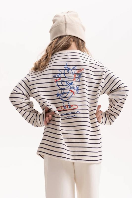 Джемпер для девочки в полоску. Летняя тельняшка с принтом в морском стиле. Футболка для девочки с длинным рукавом. Подходит для малышей в детский сад и подростков. Можно носить весной и осенью, а также зимой.