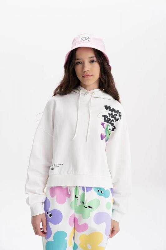 Модную толстовку с принтом из высококачественного хлопкового футера можно носить круглый год весной, летом, осенью и зимой. Свитшот с капюшоном подойдет для повседневной носки на занятия, в школу, в сад и на прогулку. Короткая кофта идеальна для девочки подростка в виде подарка на любой праздник.