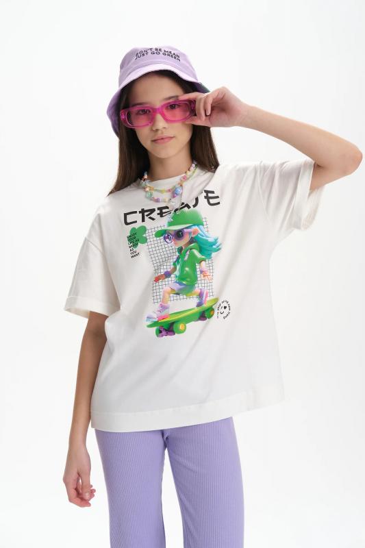 Хлопковая футболка для девочки из премиального трикотажа. Подойдет как малышам в детский сад так и подросткам. Подходит для круглогодичного ношения весной, летом, осенью и зимой.