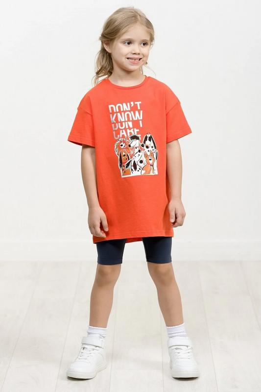 Комплект для девочек туника и велосипедки. Туника актуального расслабленного силуэта с плавным перепадом длин спинки и переда. Rubber принт собаки стикерпак с обилием серебряного металлика. Перевод Не знаю. Все равно. Классические велосипедки.