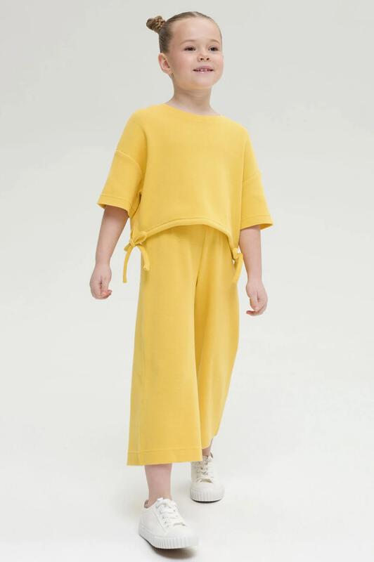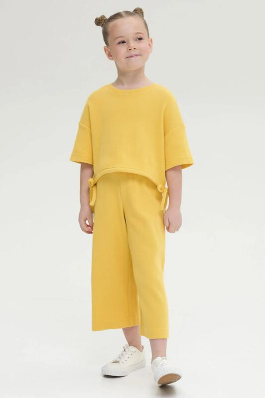 Стильная и уютная пижама актуального жёлтого цвета для девочки. В составе ткани 100% хлопка — идеально для детской одежды! Модель приятна на ощупь, прекрасно пропускает воздух, позволяя коже ребёнка дышать. При этом в пижаме из хлопка ребёнку будет уютно, даже если он сбросит одеяло. Всё это обеспечивает комфортный и качественный сон. Свободная футболка и комфортные шорты, плечо немного спущено, рукава широкие — в пижаме очень удобно спать. Широкая и мягкая резинка в поясе не перекручивается и не давит. Отделка горловины из эластичной рибаны — она не растягивается, ребёнку удобно надевать и снимать пижаму. Шорты однотонные, жёлтого цвета. Футболку украшает позитивный принт в виде ромашки на скейтборде. Надписи переводятся: "