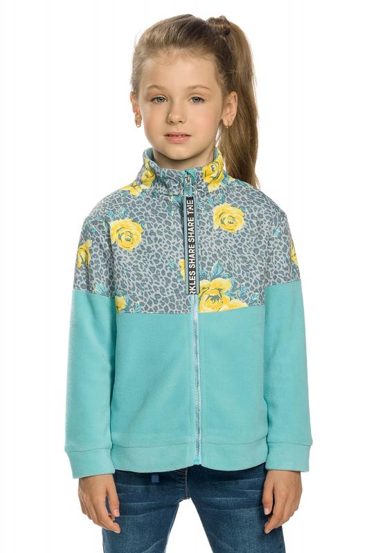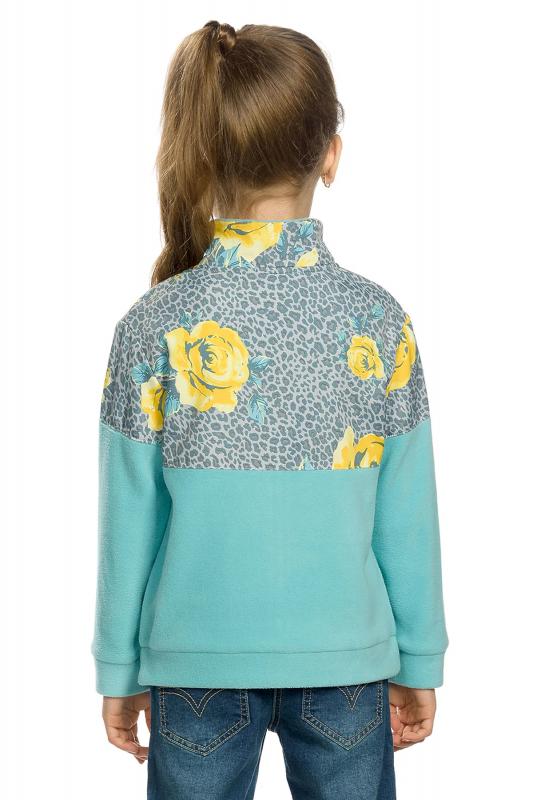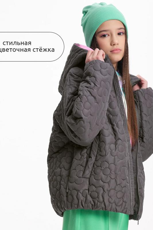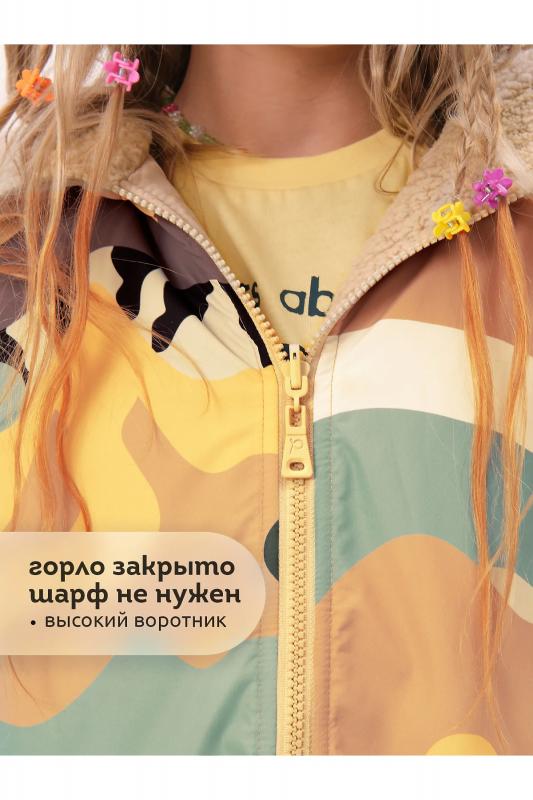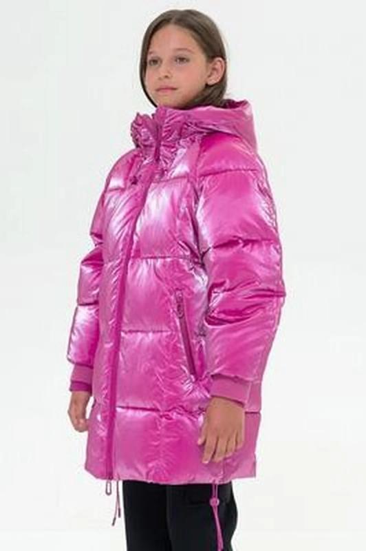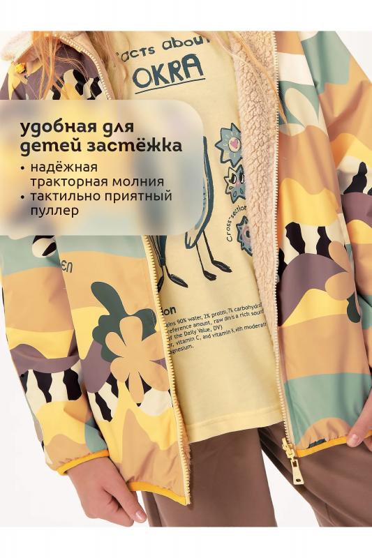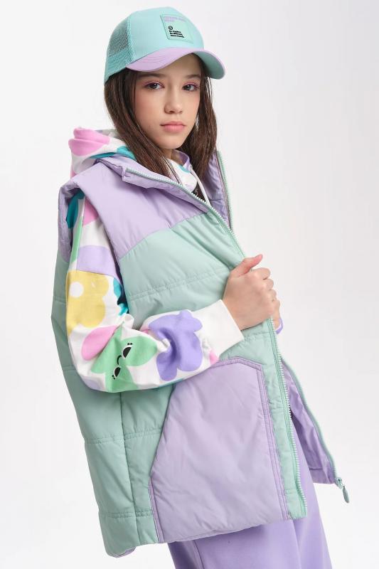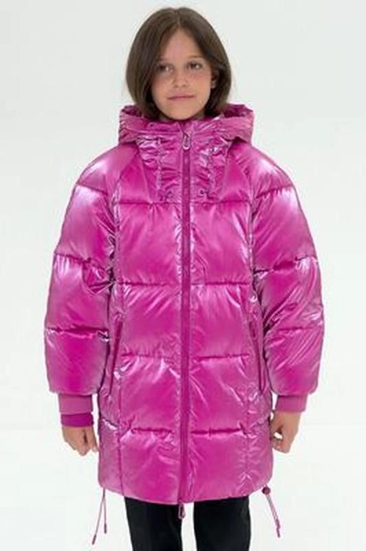 Комплект для девочек футболка и юбка. Футболка свободного объёма с цельнокроеным рукавом с отгибающейся закрепленной манжетой. Вдоль линии плеч настрочена декоративная трикотажная тесьма. По переду изделия принт с разноцветным глиттером в виде птичек колибри и надписи, перевод Блестящее будущее , и вышивка из переливающихся переворачивающихся пайеток. Юбка - Новинка. Прямоугольная юбка с фигурной угловатой линией низа, пояс на широкой внутренней резинке.