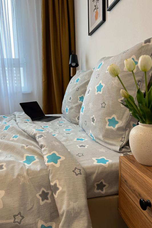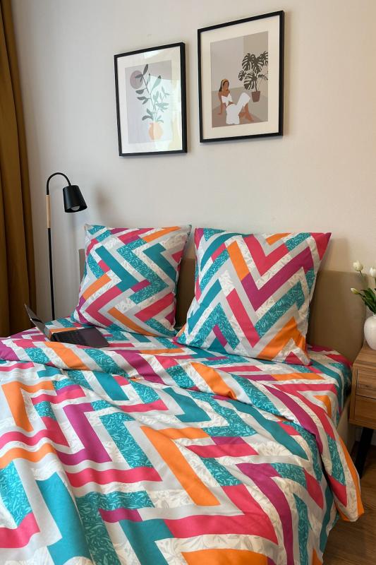 Представленный комплект постельного белья 1,5сп изготовлен из поплина плотностью 110 (+-- 5) гр-м2. Поплин - это ткань из качественного 100% натурального мягкого хлопка. Ткань не образует катышки, изделия из неё прочные и не подвержены сильной усадке. Экологичная, гипоаллергенная ткань обладает отличными впитывающими свойствами и позволяет коже дышать, что в огромной степени способствует полноценному и здоровому сну. Отлично стирается, выдерживая более сотни стирок, сохраняя размеры, цвета и рисунок. Таким комплектом приятно пользоваться всей своей семьей и приятно дарить. Качественные импортные красители, полный цикл закрепления, позволяют надолго сохранить насыщенность цвета. Легкий, мягкий и одновременно прочный материал великолепно подходит для постельного белья среднего ценового сегмента. Комплект постельного белья из поплина - разумный выбор качественного товара! Способ застёгивания наволочки - клапан 20 см, пододеяльника - отверстие без застёжки по краю изделия с подвёрнутым краем. Комплект постельног