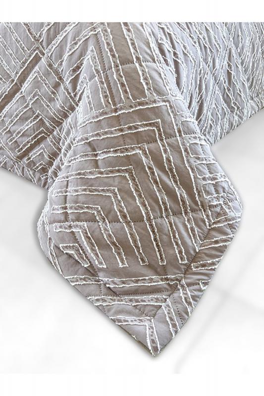 Покрывало на кровать с декоративной отделкой - это не просто предмет декора, а настоящее произведение искусства, призванное украсить и сделать уютным любую спальню. Пышное и мягкое покрывало создаст атмосферу комфорта и уюта, придавая интерьеру особый шарм и шик. Верхняя часть покрывала выполнена из полисатина с жаккардовым декоративным элементом, нижняя часть покрывала из мытого полисатина, с прослойкой синтепона в средней части (технология ультрастеп).