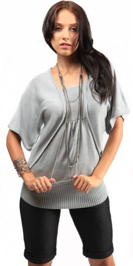 Описание: Женственная свободная туника с искорками люрекса. Вырез карэ-формы. Свободный рукав «кимоно» цельно связан. Закруглённые рельефы спереди создают эффект болеро. Лёгкая сборка по центру спереди. Широкая вязка резинкой по линии низа. Модный объём вверху и плотное облегание по бёдрам. Длина 67см. Тонкая шелковистая вязка 100% «silky» акрил с серебристой люрекс ниткой. Маш стирка 40 град. На модели также Шорты БЕРМУДЫ джинс чёрный.