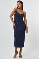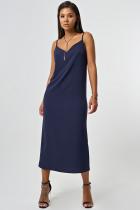Платье-комбинация струящееся в бельевом стиле темно-синее