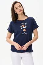 Футболка с принтом, выполнена из хлопкового полотна. Круглый вырез горловины, цельнокроеные короткие рукава с отворотами. Рост модели на фото 170