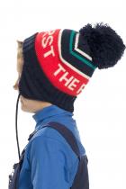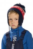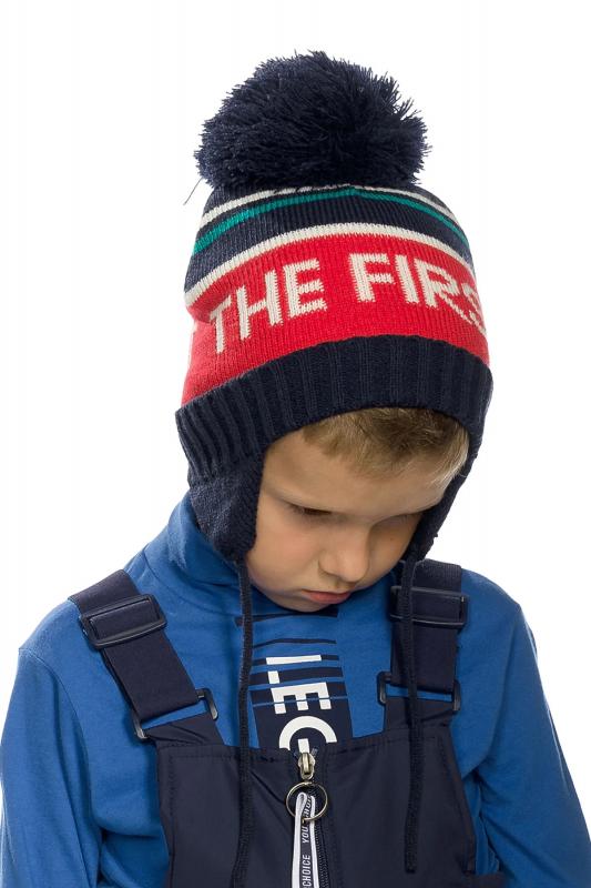 Шапка для мальчиков. Вязаная шапка с подкладом из флиса. Ушки шапки цельновывязанные, помпон и завязки. Вывязанный принт "