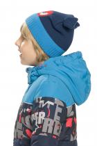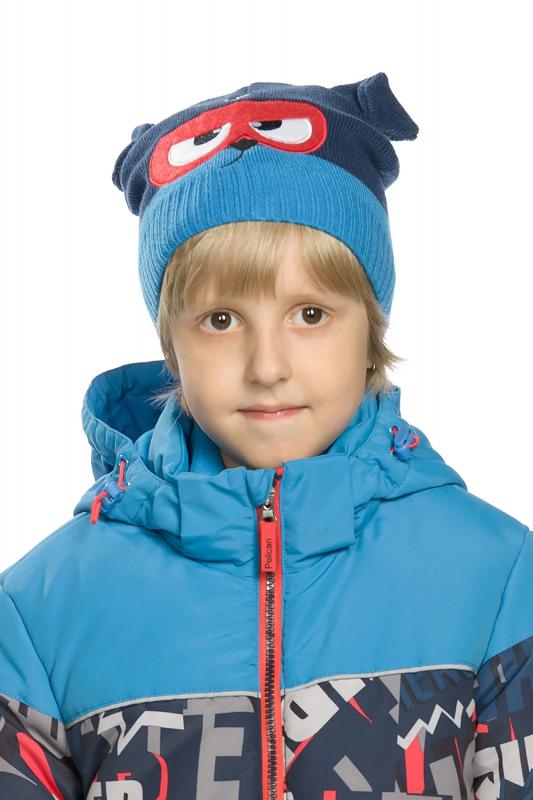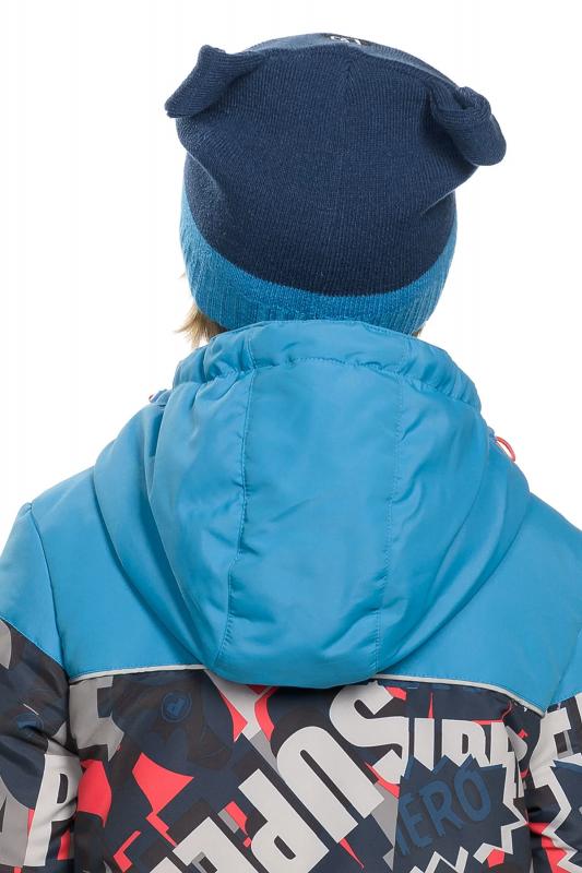Шапка для мальчиков. Двойная вязка, без отворота. Оригинальная шапка с ушами и аппликацией в форме маски.