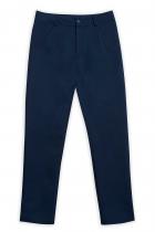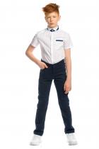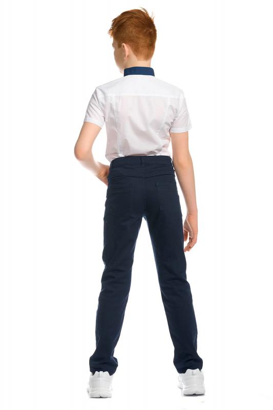 Комфортные брюки для мальчиков из очень приятной костюмной смесовой ткани. Сочетание классической формы с легкими штрихами джинсового стиля. Функциональная застежка-гульфик, шлевки, внутри регулировка по поясу резиновым шнуром.