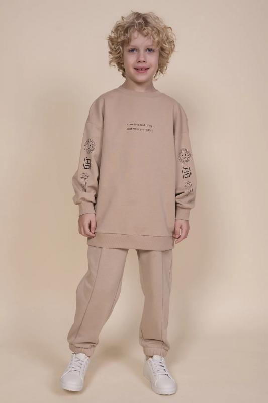 Брюки для мальчика – комфортные детские штаны в стиле smart sport. Джоггеры для мальчика незаменимы для повседневной носки весной и летом, а также круглогодичного ношения в многослойных образах. Базовые брюки для мальчика на резинке на каждый день. Брюки джоггеры для мальчика выполнены из мягкого материала футер-петля с высоким содержанием хлопка и небольшим добавлением полиэстера. Материал хорошо пропускает воздух, обеспечивает здоровую гигроскопичность. Ребенок не потеет и комфортно чувствует себя во время активных игр и занятий спортом. Наличие полиэстера наделяет изделие повышенной износоустойчивостью к усадке, защитой от образования катышков. Штаны не линяют после стирки и сохраняют красивый внешний вид. Джоггеры для мальчика объемные по всей длине. Низ собран на широкую внутреннюю резинку. Пояс на широкой резнке с внутренней регулировкой объема шнуром. Боковые карманы расположены в швах. По переду – вертикальные строчки, имитирующие стрелки. Спортивные брюки для мальчика представлены в однотонных, базо