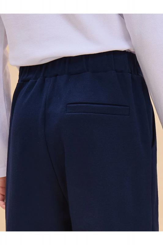 Трикотажные брюки с имитацией швейных из формоустойчивого трикотажа. Брюки с карманами в боковых швах. Гладкий пояс на переде, имитация застежки с гульфиком, имитация кармана с листочкой на спинке. Брюки можно носить с отворотами и без.