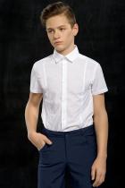 Приталенная сорочка с вертикальными рельефами по переду и спинке. Короткий рукав. Форма воротника Windsor (большое расстояние между углами, можно носить как с галстуком или бабочкой, так и без дополнительных аксессуаров). Коллекция - школа.