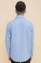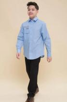 Школьная рубашка свободного силуэта для мальчика. В составе ткани преобладает хлопок — модель мягкая, приятная на ощупь и пропускает воздух. Полиэстер помогает не терять форму и превосходный внешний вид. По спинке кокетка с двумя защипами для свободы движения. Накладной карман с клапаном — актуальный модный тренд. Над карманом изделие украшает забавный принт, мягкий и устойчивый к частым стиркам. Перевод: «Мама, положи в мой карман деньги, пожааалуйста». Рубашка отлично сочетается с различными брюками, пиджаками, жилетами и подходит мальчикам с разными типами фигуры. Модный и практичный вариант школьной сорочки для мальчика.