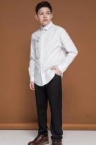 Школьная рубашка свободного силуэта для мальчика. В составе ткани преобладает хлопок — модель мягкая, приятная на ощупь и пропускает воздух. Полиэстер помогает не терять форму и превосходный внешний вид. По спинке кокетка с двумя защипами для свободы движения. Накладной карман с клапаном — актуальный модный тренд. Над карманом изделие украшает забавный принт, мягкий и устойчивый к частым стиркам. Перевод: «Мама, положи в мой карман деньги, пожааалуйста». Рубашка отлично сочетается с различными брюками, пиджаками, жилетами и подходит мальчикам с разными типами фигуры. Модный и практичный вариант школьной сорочки для мальчика.