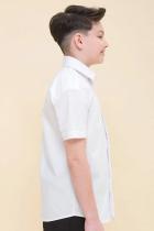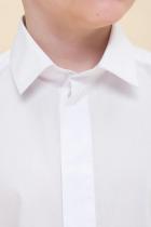 Школьная рубашка прямого силуэта для мальчика. Преобладающий в составе ткани хлопок делает эту модель мягкой, воздухопроницаемой и комфортной для ребёнка. Полиэстер помогает изделию не терять форму и отличный внешний вид. Классическая центральная застёжка на пуговицы скрыта планкой — это придает сорочке элегантной строгости. Модель лаконичного дизайна легко сочетать с различными брюками, пиджаками, жилетами. Красивая и практичная сорочка — подходит как для повседневной носки в школу, так и для более торжественных случаев. Идеально белый цвет без желтого и серого оттенка.