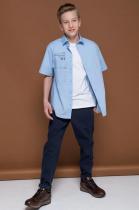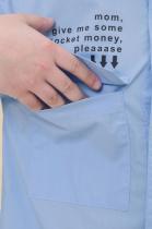 Школьная рубашка свободного силуэта для мальчика. В составе ткани преобладает хлопок — модель мягкая, приятная на ощупь и пропускает воздух. Полиэстер помогает не терять форму и превосходный внешний вид. По спинке кокетка с двумя защипами для свободы движения. Накладной карман с клапаном — актуальный модный тренд. Над карманом изделие украшает забавный принт, мягкий и устойчивый к частым стиркам. Перевод: «Мама, положи в мой карман деньги, пожааалуйста». Рубашка отлично сочетается с различными брюками, пиджаками, жилетами и подходит мальчикам с разными типами фигуры. Модный и практичный вариант школьной сорочки для мальчика.