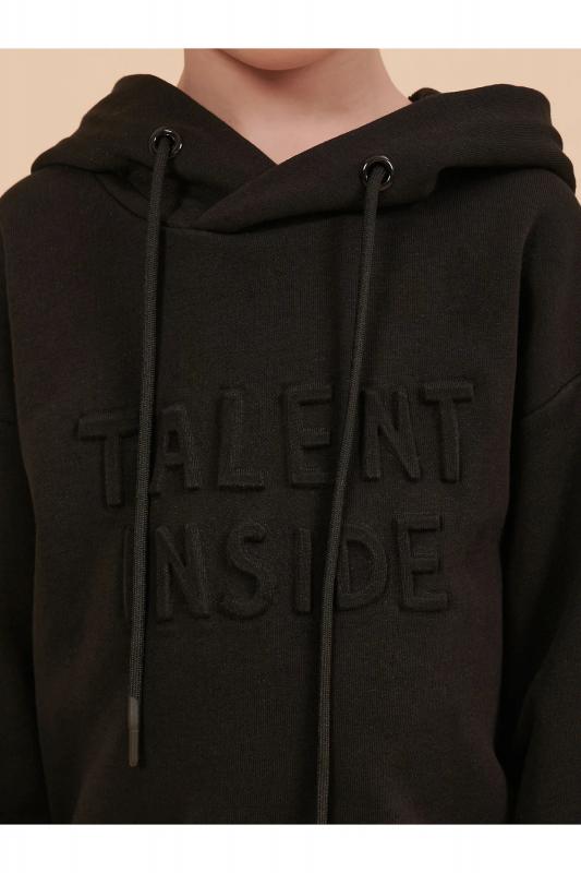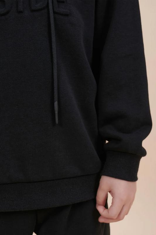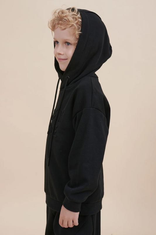 Толстовка для мальчика свободного кроя – актуальная вещь в любом сезоне. Уютное худи для мальчика с капюшоном незаменимо дома и на прогулке. Трикотажная толстовка для мальчика подростка с капюшоном выполнена с высоким содержанием хлопка и добавлением в состав эластана. Приятный к телу материал отлично носится, не дает усадки, не линяет в процессе стирки и сохраняет красивый внешний вид. Хлопок хорошо пропускает воздух, наделяет необходимой гигроскопичностью – ребенок активно двигается, играет, не потеет. Детское худи для мальчика из материала футер-петля. Изделие свободного кроя оверсайз со спущенным плечом, углубленной проймой. Рукава и низ на манжете из риба. Капюшон на запахе, с люверсами и шнурками для регулировки. Изделие выполнено в однотонном цвете на выбор: бежевый, черный, зеленый. Худи для мальчика подростка оверсайз спереди декорировано выпуклым пресс-принтом: "