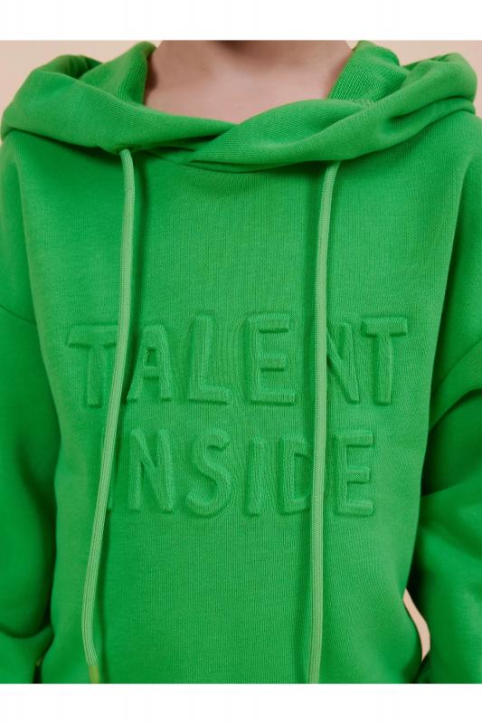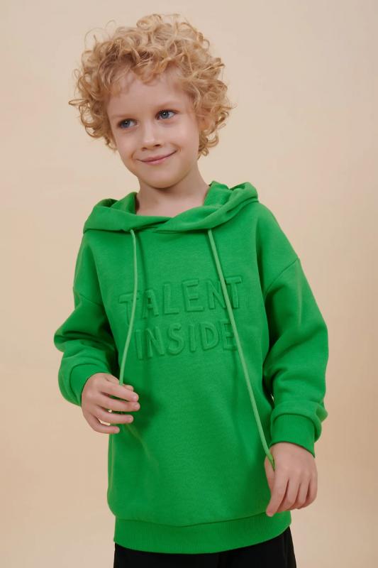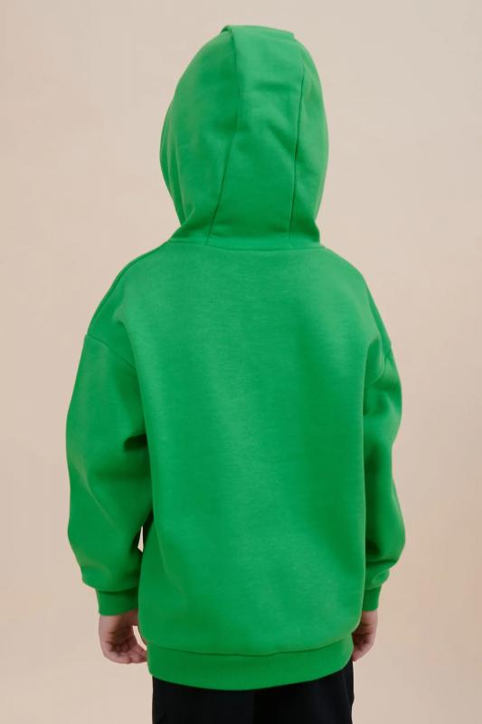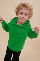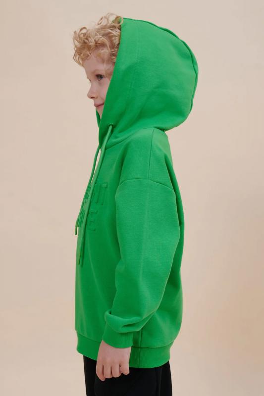 Толстовка для мальчика свободного кроя – актуальная вещь в любом сезоне. Уютное худи для мальчика с капюшоном незаменимо дома и на прогулке. Трикотажная толстовка для мальчика подростка с капюшоном выполнена с высоким содержанием хлопка и добавлением в состав эластана. Приятный к телу материал отлично носится, не дает усадки, не линяет в процессе стирки и сохраняет красивый внешний вид. Хлопок хорошо пропускает воздух, наделяет необходимой гигроскопичностью – ребенок активно двигается, играет, не потеет. Детское худи для мальчика из материала футер-петля. Изделие свободного кроя оверсайз со спущенным плечом, углубленной проймой. Рукава и низ на манжете из риба. Капюшон на запахе, с люверсами и шнурками для регулировки. Изделие выполнено в однотонном цвете на выбор: бежевый, черный, зеленый. Худи для мальчика подростка оверсайз спереди декорировано выпуклым пресс-принтом: "