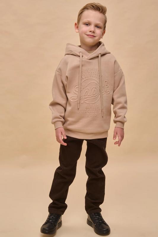 Толстовка детская из футера с начёсом для мальчика. Худи трендового оверсайз-силуэта со спущенным плечом подарит ребёнку комфорт и не будет стеснять его движений. Толстовка с капюшоном защитит от холода и ветра. Модель дополнена манжетами из эластичной рибаны по низу и рукавам. Рибана не растягивается и надолго сохраняет отличный внешний вид. Изделие неприхотливо в уходе. Толстовка на мальчика выполнена из ткани с высоким содержанием хлопка — модель мягкая, воздухопроницаемая и гипоаллергенная. Благодаря полиэстеру худи износостойкое, сохраняет форму даже после множества стирок. Изделие выполнено в универсальной расцветке, без проблем сочетается с любыми брюками, джинсами. Отличное худи оверсайз для мальчиков дошкольного и младшего школьного возраста, а также подростков. Джемпер подходит для детского сада, прогулок, отдыха, дома. Худи с капюшоном для мальчика подходят для круглогодичной носки. Помните о правильном уходе за изделием: рекомендуется стирать при температуре не выше 30 °C, без предварительного за