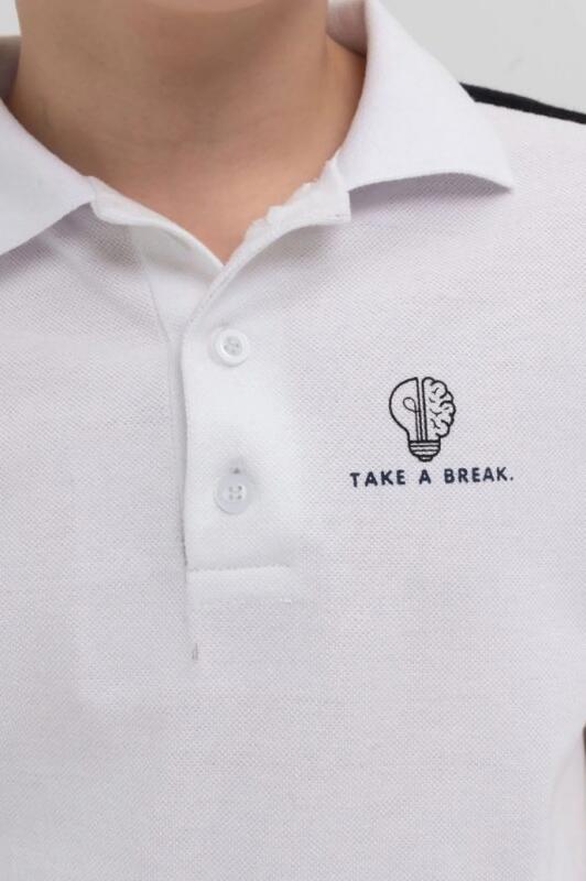 Эта футболка-поло понравится мальчишкам за спортивный стиль, удобный фасон, декор на рукаве в виде настроченной контрастной киперной ленты и заметный текстовый принт Сделай перерыв (перевод). А их мамы будут довольны тем, что футболка хорошо впитывает влагу и пропускает воздух, легко стирается и не теряет цвет. Эта модель подойдет к любым брюкам или джинсам. Под пиджак или спортивную куртку. Актуальная модель для любого гардероба.