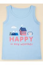 . Такую майку можно носить не только как нательное бельё, но и как домашнюю одежду, для сна или майку для летнего отдыха. А голубой цвет делает ее универсальной. Красивый и практичный выбор для вашего ребёнка.