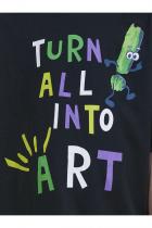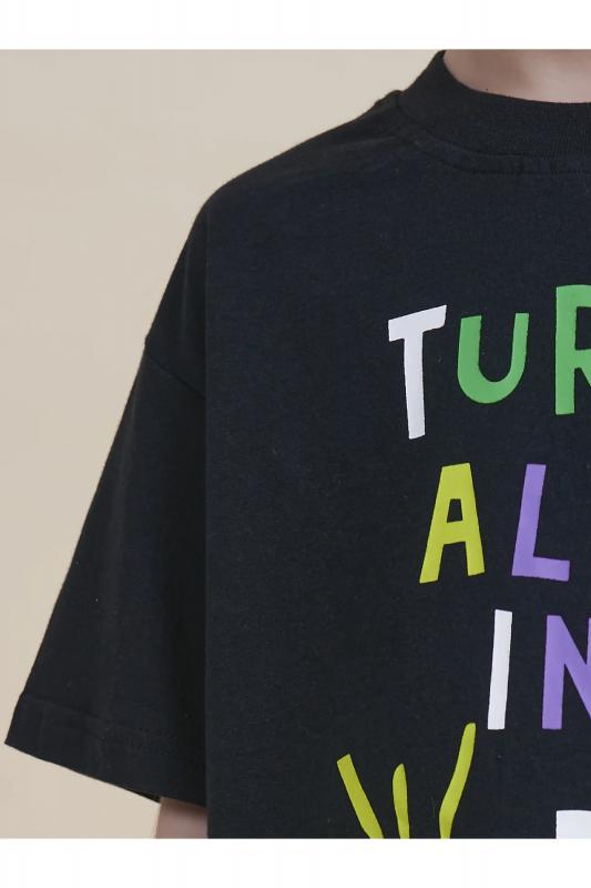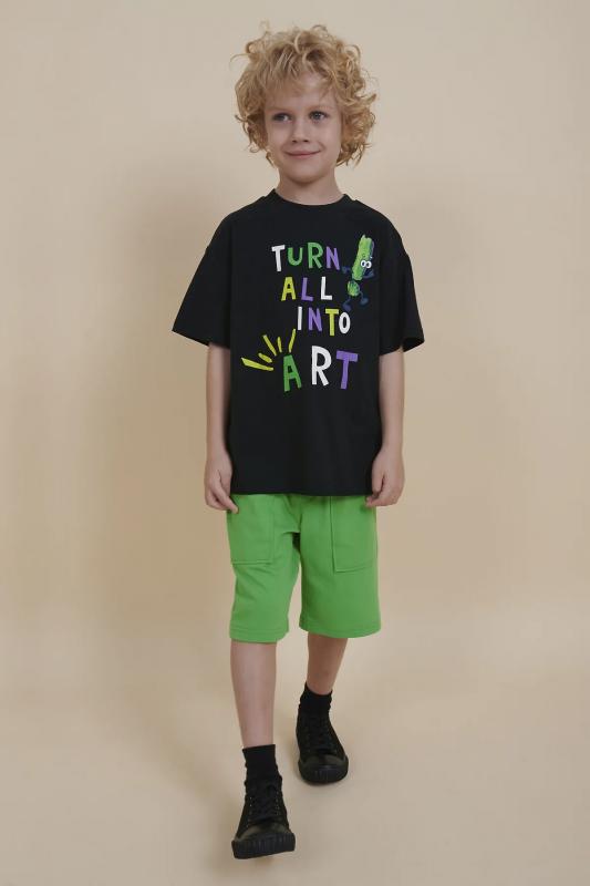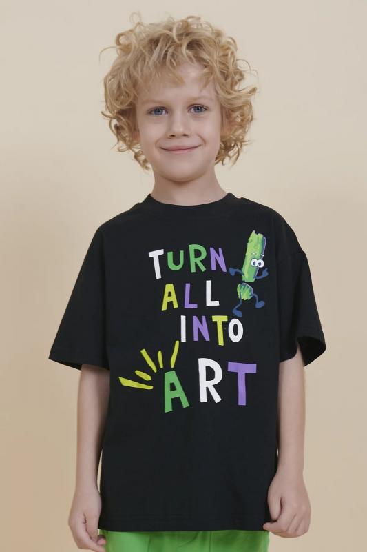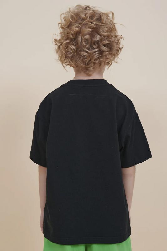 Футболка для мальчика оверсайз – модель большого объема на каждый день, для дома и прогулок. Легкая трикотажная футболка подходит в качестве нательного белья и многослойных образов. Базовая футболка на любой сезон. Изделие сшито из 100% натурального хлопка, мягкий материал приятно прилегает к телу, не вызывая дискомфортных ощущений во время движений. Хлопок хорошо пропускает воздух, обеспечивает гигроскопичность. Материал не задерживает влагу - ребенок не потеет. Футболка с оптимальным размером горловины удобна в носке - позволит ребенку с легкостью надевать и снимать ее самостоятельно, прослужит долго и будет радовать износостойкостью. Модель представлена в черном цвете. Черная футболка для мальчика - оптимальный вариант на любой выход. Футболка для мальчика с принтом украшена надписью "