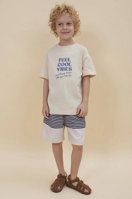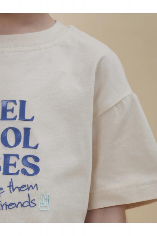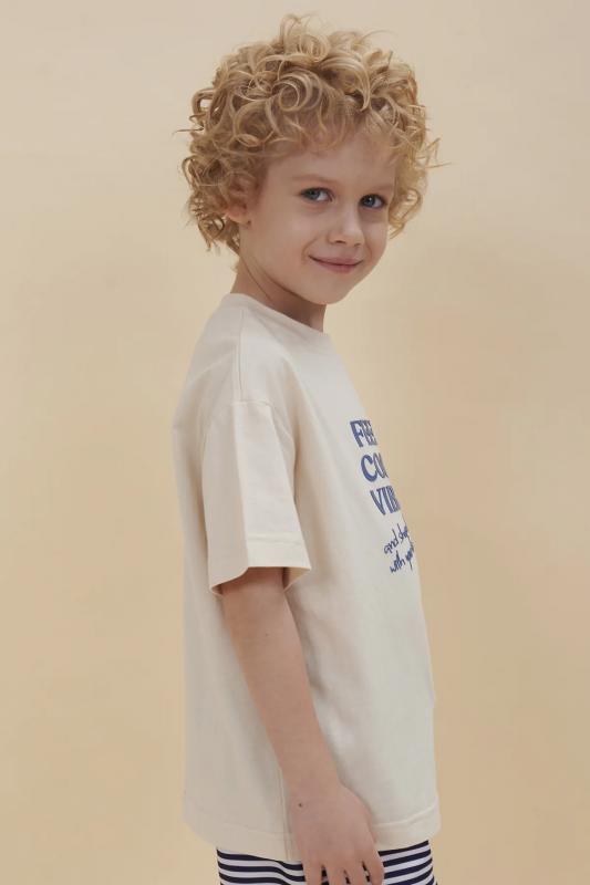 Футболка для мальчика оверсайз – модель большого объема на каждый день, для дома и прогулок. Легкая трикотажная футболка подходит в качестве нательного белья и многослойных образов. Базовая футболка на любой сезон. Изделие сшито из 100% натурального хлопка. Футболка детская для мальчика из мягкого материала приятно прилегает к телу, не вызывая дискомфортных ощущений во время движений. Хлопок хорошо пропускает воздух, обеспечивает гигроскопичность. Материал не задерживает влагу - ребенок не потеет. Футболка с оптимальным размером горловины удобна в носке - позволит ребенку с легкостью надевать и снимать ее самостоятельно. Футболка для мальчика прослужит долго и будет радовать износостойкостью. Модель представлена в двух расцветках на выбор: синий и бежевый. Красивый вариант на любой выход. Футболка для мальчика с принтом украшена надписью "