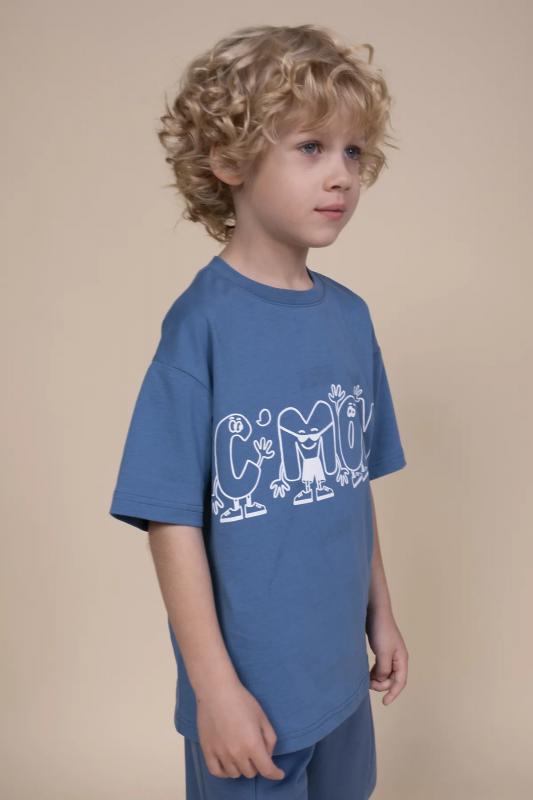 Футболка детская – модель умеренного объема на каждый день, для дома и прогулок. Легкая трикотажная футболка подходит в качестве нательного белья и многослойных образов. Базовая футболка на любой сезон. Изделие сшито из 100% натурального хлопка, мягкий материал приятно прилегает к телу, не вызывая дискомфортных ощущений во время движений. Хлопок хорошо пропускает воздух, обеспечивает гигроскопичность. Материал не задерживает влагу - ребенок не потеет. Детская футболка с оптимальным размером горловины удобна в носке - позволит ребенку с легкостью надевать и снимать ее самостоятельно, прослужит долго и будет радовать износостойкостью. Модель представлена в двух ярких расцветках на выбор. Это желтая футболка для мальчика и в цвете джинс. Солнечная и синяя футболка для мальчика - красивый вариант на любой выход. Футболка для мальчика с принтом украшена надписью "