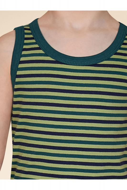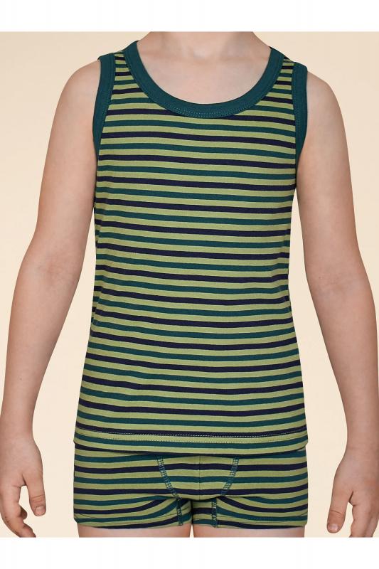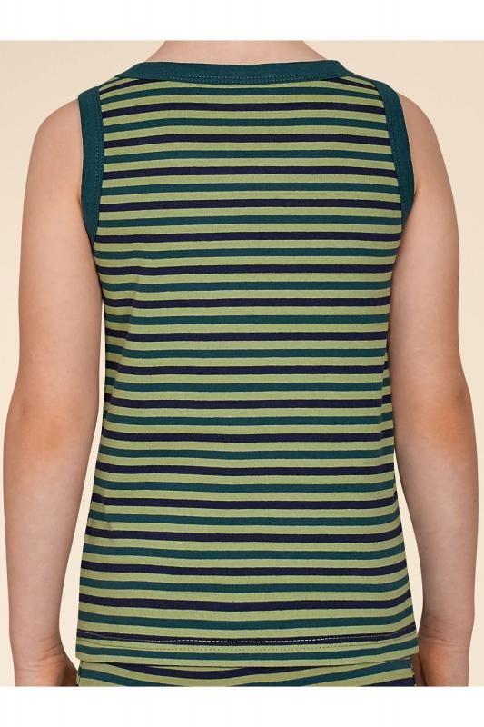 Майка детская из 100% хлопка для мальчика. Натуральный состав ткани обеспечивает изделию мягкость, гипоаллергенность и воздухопроницаемость. Майка детская для мальчиков комфортно сидит по фигуре, её можно надевать под рубашку, джемпер, свитер. Горловина и проймы изделия отделаны пайпингом в тон — они хорошо держат форму, надолго сохраняют аккуратный внешний вид. Хлопковая майка в сине-зелёную полоску лаконичного дизайна, без декоративных элементов — подойдёт под любую одежду. Майка детская для мальчика неприхотлива в уходе. Нательная майка для мальчика подходит для повседневной носки, отдыха, а также для сна и дома. Помните о правильном уходе за изделием: рекомендуется стирать при температуре не выше 30 °C, без предварительного замачивания, с изнанки. Это поможет сохранить качество и цвет майки на длительное время. Не забывайте о выборе правильного размера. Используйте таблицу размеров на фотографии, чтобы выбрать подходящий вариант для вашего мальчика. Обратите внимание, что цвет товара на экране вашего уст