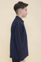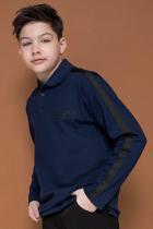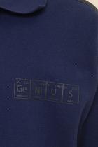 Джемпер-поло из 100% хлопка для мальчика. Натуральный состав ткани обеспечивает изделию мягкость, воздухопроницаемость и комфортность. Воротник из рибаны — долго не теряет форму и устойчив к частым стиркам. Модель декорирована лампасами вдоль плечевых швов и рукавов — один из актуальных трендов. На груди оригинальный силиконовый принт в виде элементов таблицы Менделеева, который устойчив к частым стиркам. Джемпер застёгивается на 3 пуговицы под горловиной — удобно надевать и снимать. Стильный вариант школьной формы для мальчиков.