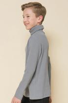 Водолазка из модной ткани в рубчик для мальчика. В составе ткани преобладает хлопок — модель мягкая, тактильно приятная и пропускает воздух. Эластан помогает сохранять форму. Воротник-стойка позволяет удобно надевать и снимать изделие, при этом он отлично сохраняет форму. Водолазку лаконичного дизайна легко сочетать с различными брюками, пиджаками, жилетами, это идеальная база гардероба. Стильный и практичный вариант школьной одежды для мальчиков.