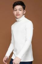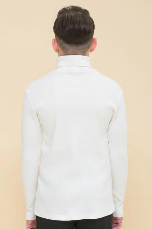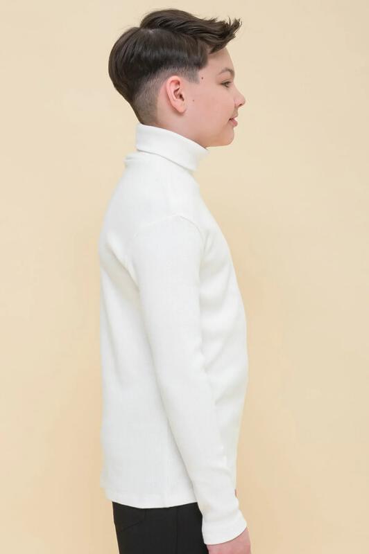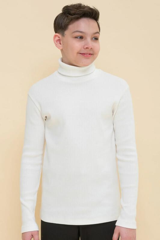 Водолазка из модной ткани в рубчик для мальчика. В составе ткани преобладает хлопок — модель мягкая, тактильно приятная и пропускает воздух. Эластан помогает сохранять форму. Воротник-стойка позволяет удобно надевать и снимать изделие, при этом он отлично сохраняет форму. Водолазку лаконичного дизайна легко сочетать с различными брюками, пиджаками, жилетами, это идеальная база гардероба. Стильный и практичный вариант школьной одежды для мальчиков.