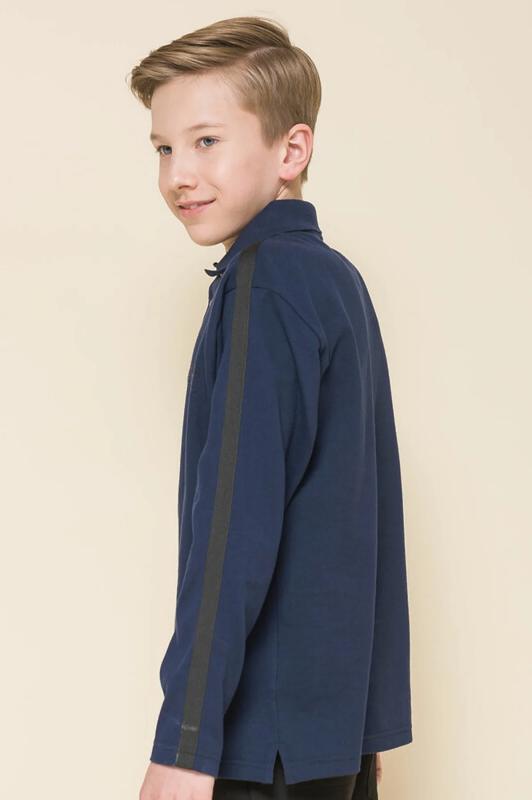 Джемпер-поло из 100% хлопка для мальчика. Натуральный состав ткани обеспечивает изделию мягкость, воздухопроницаемость и комфортность. Воротник из рибаны — долго не теряет форму и устойчив к частым стиркам. Модель декорирована лампасами вдоль плечевых швов и рукавов — один из актуальных трендов. На груди оригинальный силиконовый принт в виде элементов таблицы Менделеева, который устойчив к частым стиркам. Джемпер застёгивается на 3 пуговицы под горловиной — удобно надевать и снимать. Стильный вариант школьной формы для мальчиков.