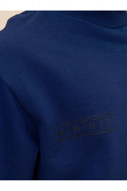 Толстовка из мягкого футера с высоким воротником-стойкой для мальчика. Модель выполнена из 100% хлопка — она дышащая, приятная на ощупь и очень комфортная. Воротник и манжеты выполнены из рибаны — не теряют форму, при этом толстовку удобно надевать и снимать. Изделие украшено мягким объёмным силиконовым принтом в виде слова «гений», написанного элементами таблицы Менделеева. Принт устойчив к многочисленным стиркам. Стильный и практичный вариант школьной одежды для мальчиков.
