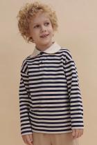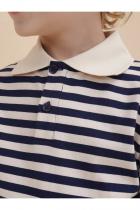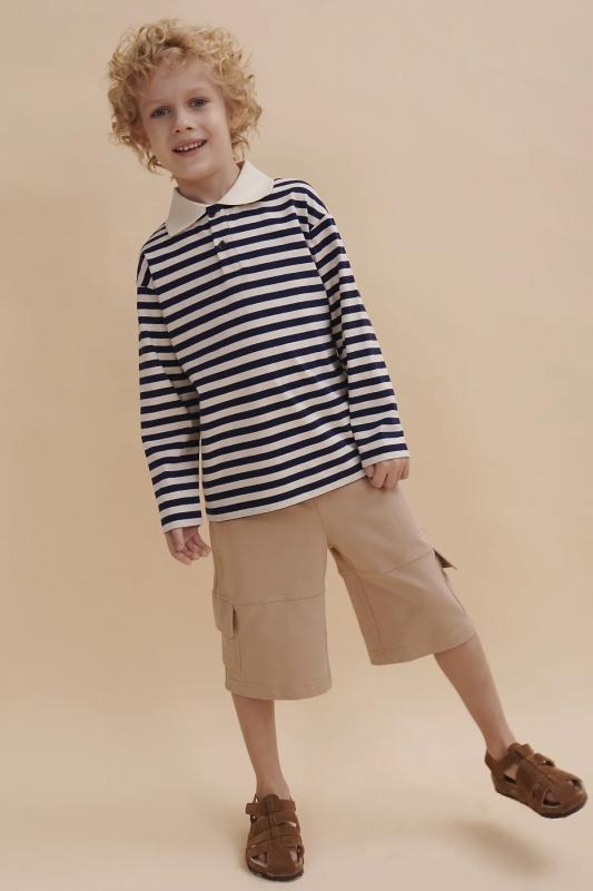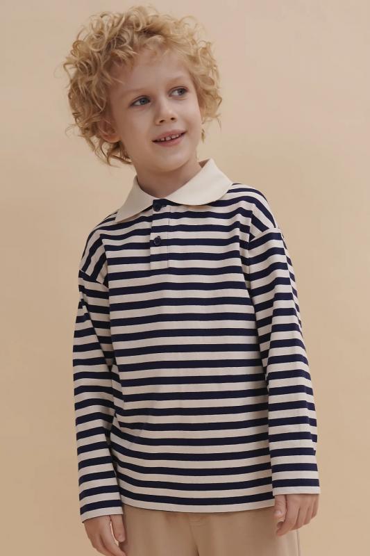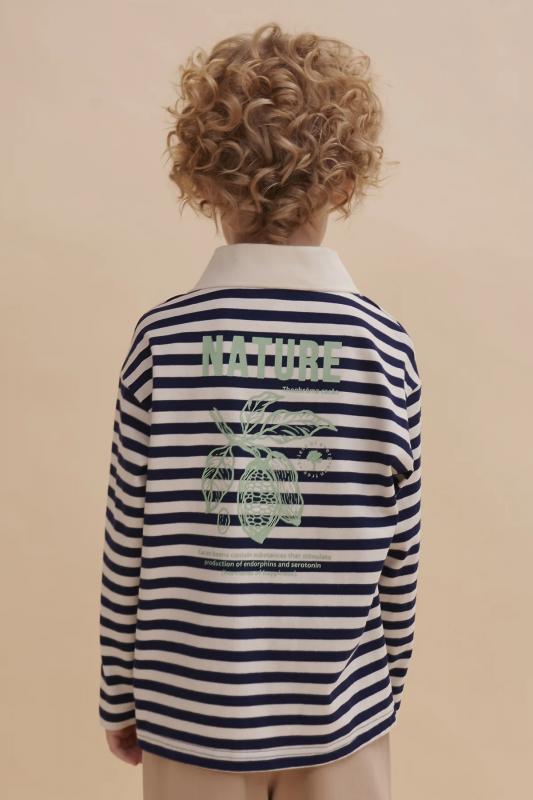 Джемпер для мальчика свободного кроя с воротником поло – универсальная вещь в гардеробе каждого ребенка. Легкий трикотажный лонгслив для мальчика с длинным рукавом удобно носить весной и летом, а также круглогодично для многослойных образов. Изделие сшито из 100% натурального хлопка. Мягкий, приятный к телу материал хорошо пропускает воздух, обеспечивает гигроскопичность. Ребенок не потеет во время подвижных игр. Лонгслив поло для мальчика не линяет после стирки. Тельняшка для мальчика имеет вывязанную полоску, не принт. Сохраняет красивый внешний вид даже при долгой носке. Изделие имеет планку по переду с застежкой на одну пуговицу. Воротник выполнен из основного материала. Детский лонгслив представлен в бордовом и синем цвете с классической морской полоской. На спинке изображение ветки шоколадного дерева и образовательный текст: "