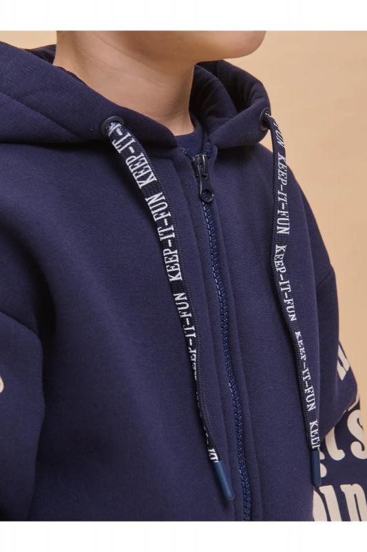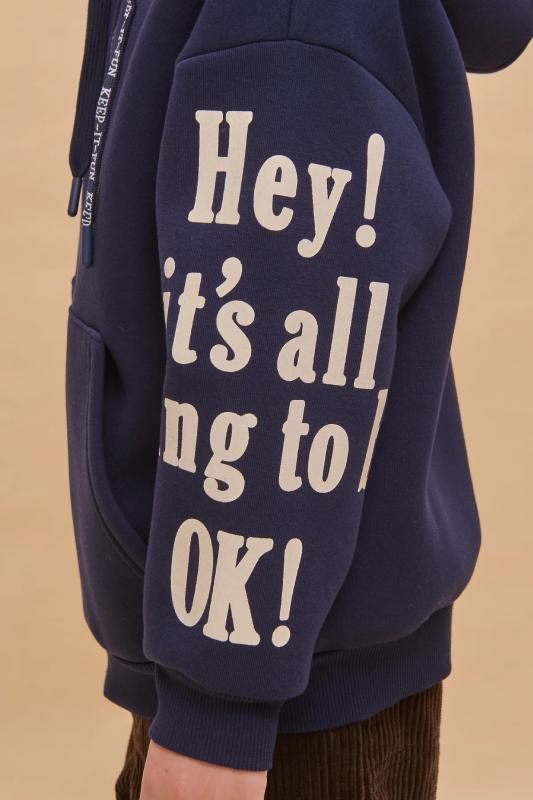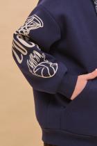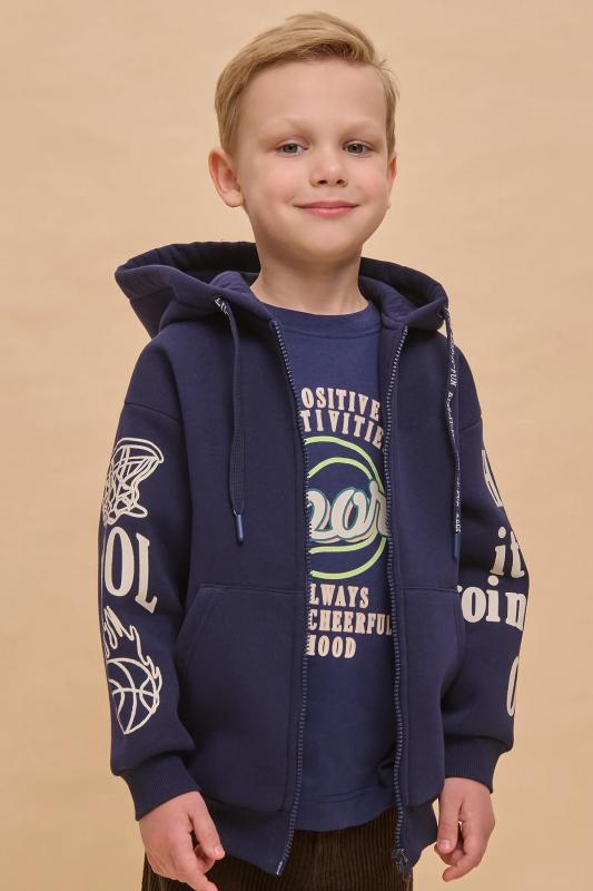 Худи зипка для мальчиков. Трикотажная куртка оверсайз из футера с начёсом — отличная альтернатива ветровке в прохладную погоду. Толстовка детская застёгивается на центральную молнию. В составе ткани преобладает хлопок — зипка мягкая, приятная на ощупь и хорошо пропускает воздух. Полиэстер обеспечивает изделию прочность и долговечность. Регулируемый капюшон и манжеты из эластичной рибаны по рукавам и низу защитят от холода и ветра. По переду куртка детская дополнена объёмными накладными карманами. Зипка — базовый элемент для детского и подросткового гардероба. Легко сочетается с джинсами, спортивными брюками и брюками карго. Толстовка для мальчика на молнии декорирована графичными монохромными принтами в университетском стиле по рукавам. Принты эластичные и стойкие, без проблем переносят частные стирки. Стильная и практичная худи на молнии для мальчика неприхотлива в уходе. Помните о правильном уходе за изделием: рекомендуется стирать при температуре не выше 30 °C, без предварительного замачивания, с изнанки.