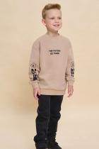 Свитшот детский для мальчика. Свободная толстовка со спущенным плечом и углубленной проймой подарит ребёнку комфорт и стнет стильным дополнением гардероба. Объёмный джемпер средней длины — актуальный модный тренд. Манжеты, отделка горловины и низа изделия выполнены из эластичной рибаны (ткани в рубчик). Она не растягивается, отлично сохраняет форму, при этом ребёнку удобно надевать и снимать свитшот. Модель неприхотлива в уходе. Свитшот с принтом по переду и рукавам выполнен из футера с начёсом. Принты мягкие и стойкие, без проблем переносят частые стирки. В составе ткани преобладает высококачественый хлопок — толстовка приятна на ощупь и прекрасно пропускает воздух. Полиэстер помогает сохранить цвет и первозданный внешний вид надолго. Детский свитшот выполнен в в универсальных цветах, которые легко сочетать с любыми брюками, джинсами. Оверсайз-свитшот подходит как для маленьких мальчиков, так и для подростков. Джемпер идеален для детского сада, прогулок, активного отдыха, дома. Свитшот с начесом можно носит