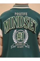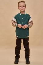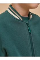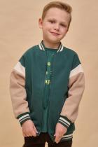 Бомбер детский для мальчиков. Стильная куртка в актуальном университетском стиле из тёплого футера с начёсом заменит ветровку в прохладную погоду. Модель свободного силуэта со спущенным плечом — ребёнку комфортно и свободно. Жакет на мальчика застёгивается на центральную молнию — актуально и практично. Горловина, низ изделия и рукавов отделаны широкой декоративной рибаной (ткань в рубчик), она эластичная и прекрасно тянется, долгое время не теряя формы. Модель выполнена из ткани с высоким содержанием хлопка — она дышащая, мягкая и комфортная. Благодаря полиэстеру бомбер сохраняет превосходный внешний вид надолго. Куртка детская дополнена удобными прорезными карманами по бокам. Бомбер для мальчика украшен принтом в модном университетском стиле по спинке. Ндписи переводятся: «позитивное мышление», «беззаботная жизнь», «будь счастливым». Жакет отлично сочетается с различными брюками и джинсами. Уютная и стильная куртка для мальчика неприхотлива в уходе. Помните о правильном уходе за изделием: рекомендуется стир