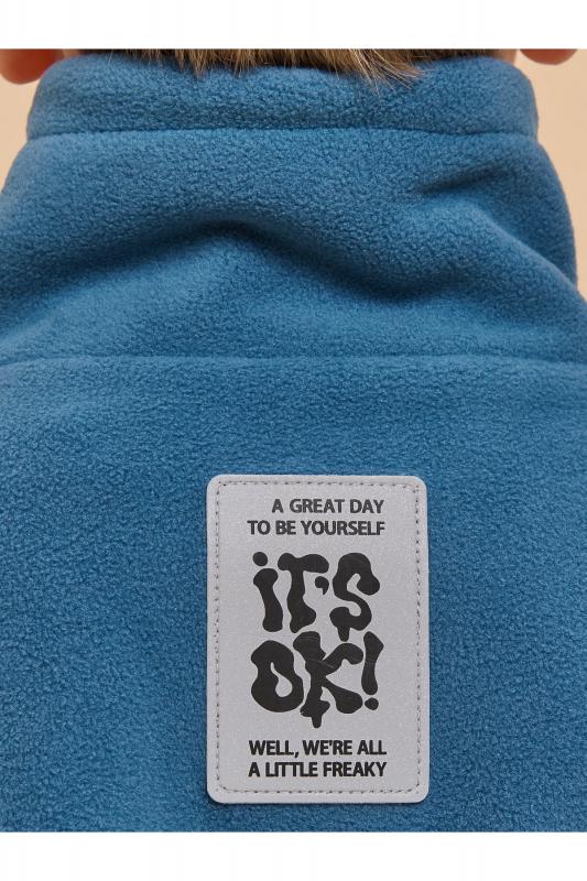 Толстовка детская для мальчиков. Куртка увеличенного объёма со спущенным плечом из мягкого и тёплого флиса заменит ветровку в прохладную погоду. Высокий воротник-стойка с утяжкой защитит от холода и ветра. Толстовка флисовая застёгивается на короткую молнию — актуальный модный тренд. Поверх молнии планка на липучке (велькро) — толстовку просто и удобно надевать и снимать. Модель выполнена из 100% полиэстера — она лёгкая, мягкая, износостойкая, просто стирается и быстро сохнет. На рукавах манжеты из эластичной рибаны, она не растягивается и надолго сохраняет отличный внешний вид. По низу куртка детская дополнена эластичным шнуром с пластиковыми фиксаторами для регулировки ширины. В боковых швах удобные караманы. Толстовка для мальчика на молнии декорирована светоотражающей нашивкой на спинке — безопасность в тёмное время суток. Надписи на нашивке переводятся: «хороший день, чтобы быть собой», «всё окей!», «все мы немного странные». Уютная и стильная куртка для мальчика неприхотлива в уходе. Помните о правильн
