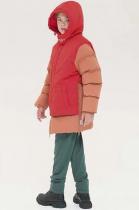 Теплая непромокаемая детская куртка для мальчика с капюшоном, оверсайз зимняя. Лучшая верхняя одежда детского гардероба для зимы. Имитация жилета. Прямого силуэта, качественная и крепкая двухсторонняя молния для возможности расстегнуть снизу сидя, с защитой подбородка от повреждений кожи. Замок не боится частого использования. Комфортная ветрозащитная планка. Удлиненная, низ регулируется эластичной кулисой шнуром со стопперами для дополнительной ветрозащиты. Мягкая линия плеч, трикотажная эластичная манжета рукава внутри с резинкой не позволит растянуться и деформироваться в процессе носки. Капюшон разработан с учетом всех анатомических линий, с регулировкой шнуром, глубина сзади рассчитана на объем шапки. Специальная форма уступов капюшона не провисает, высоко и плотно закрывая шею и лицо защищая от ветра. Липучка пришита в особом положении, благодаря чему застегивается под любым углом, выполнена из новейшего материала, который не теряет свойств со временем. Прочные швы дают свободу в движениях, можно двига