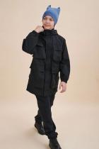 (DWR). Мембранная ткань хорошо защищает нижние слои одежды от намокания. Структура мембраны позволяет коже дышать и сохранять тепло. Ткань устойчива к износу, воздействиям солнечных лучей и влаги. Предусмотрено членение подклада (по стану хлопковый, в рукавах полиэстер) — благодаря этому ребенку легко надевать куртку, руки не путаются в рукавах. Куртка ветровка для мальчи