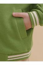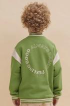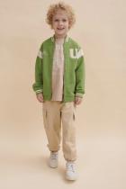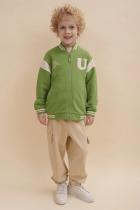Бомбер для мальчика – трикотажная модель свободного кроя на позднюю весну, лето. Уютная вещь для создания стильного образа. Жакет для мальчика легко сочетать с любым низом, использовать для многослойных образов. Куртка бомбер для мальчика идеальна в качестве плотной кофты для прохладного помещения. Трикотажная куртка выполнена из смесовой ткани с высоким содержанием хлопка и небольшим добавлением полиэстера. Материал хорошо пропускает воздух, обеспечивает здоровую гигроскопичность. Ребенок не потеет и комфортно чувствует себя во время активных игр и занятий спортом. Наличие полиэстера наделяет жакет для мальчика повышенной износоустойчивостью к усадке, защитой от образования катышек. Изделие не линяет после стирки и сохраняет красивый внешний вид. Детский бомбер на центральной застежке молнии, со спущенным плечом и углубленной проймой. Воротник, манжеты по рукавам и низу изделия - из декоративного полосатого риба – стильная резинка в университетском стиле. На рукавах вставки из основного материала контрастно