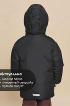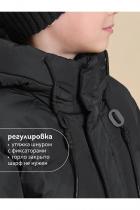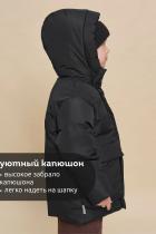 Куртка зимняя для мальчика. Модель прямого силуэта, объем - умеренный оверсайз. Куртка гладкая, без стёжки — суперактуальный тренд сезона. При этом утеплитель простёган внутри изделия — он равномерно распределён и надёжно зафиксирован. На внешнюю поверхность материала нанесена водоотталкивающая пропитка (DWR), она задерживает грязь и влагу снаружи — ребёнок не промокнет от снега, а комбинезон легко отстирается. Также есть дополнительная пропитка на внутренней стороне ткани — для более надёжной защиты от промокания. Капюшон с двумя швами, что обеспечивает анатомически правильную форму и комфортную посадку по голове. Легко одевается на шапку. Высокое забрало капюшона защищает шею и лицо от холода и ветра. Горло закрыто, шарф не нужен. Объём капюшона регулируется эластичным шнуром со стопперами. Центральная застёжка на пластиковую тракторную молнию, разъёмную с двух сторон — удобно садиться, пуллеры металлические, прочные. Сверху планка на велькро (липучках) — быстро застёгивается и расстёгивается. Куртка тепла